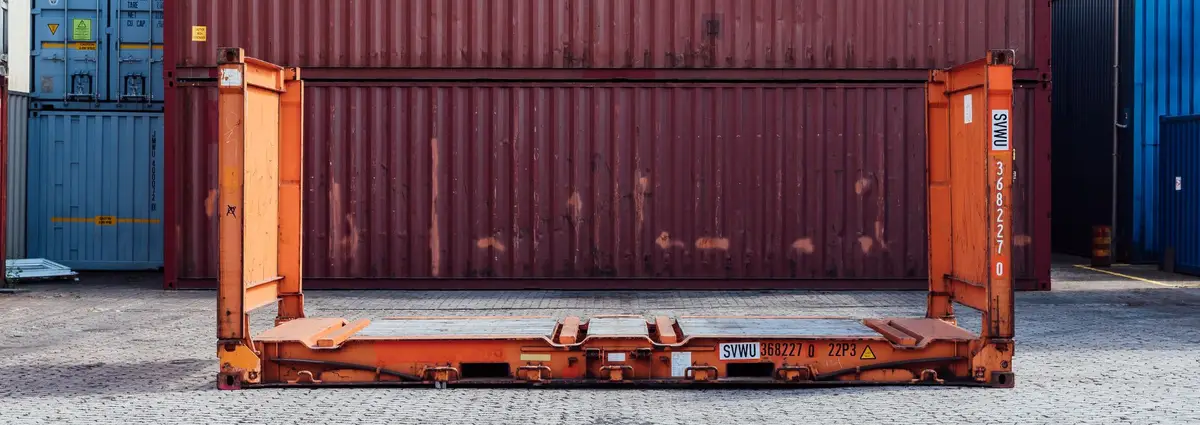 A flatrack container is a special ISO container without side walls and without a fixed roof. It consists of a stable floor platform and two end walls that secure the load. This open design allows goods to be loaded from the side or from above, which is not possible with standard containers.