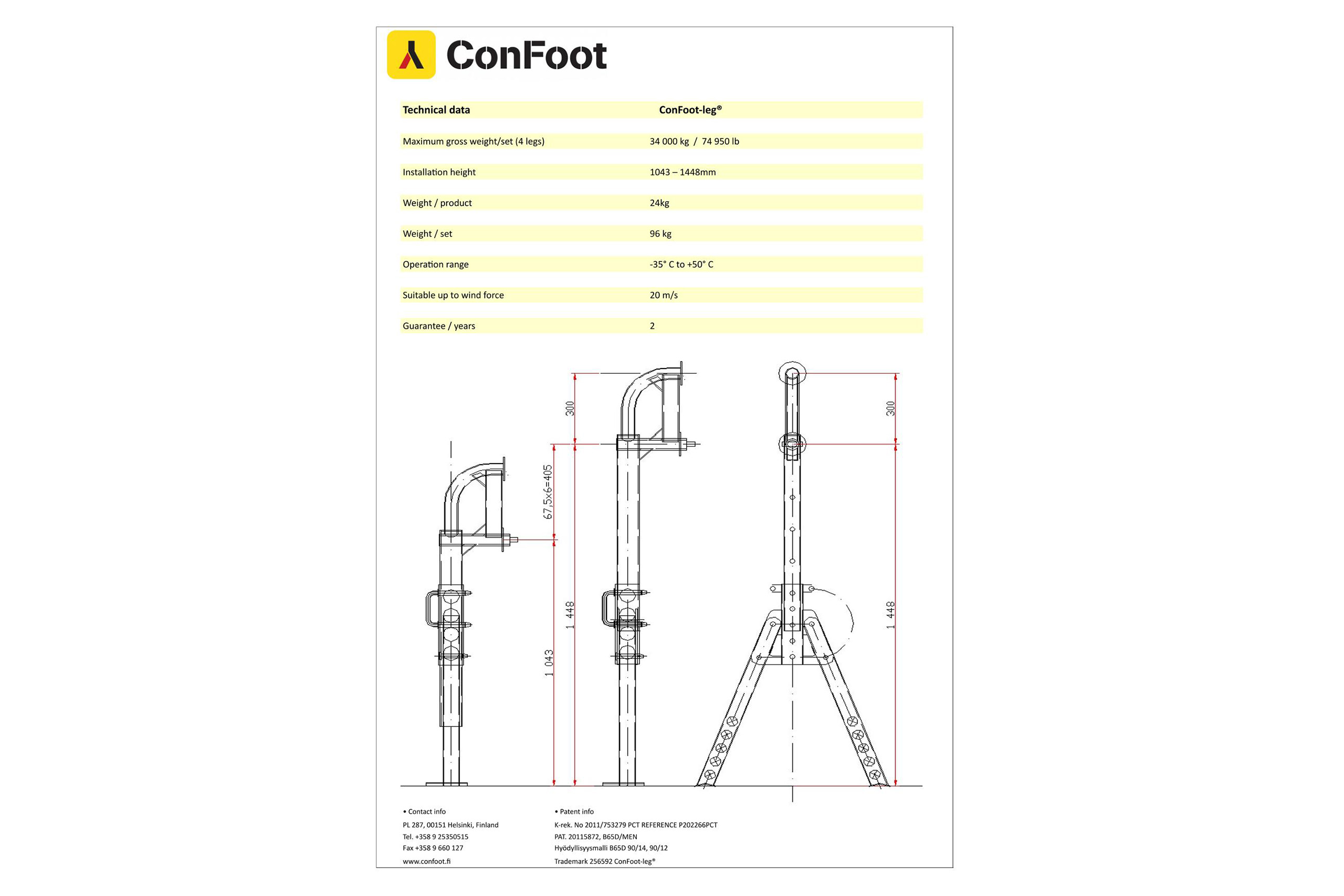 A complete ConFoot-Leg CF set includes four CF container supports.